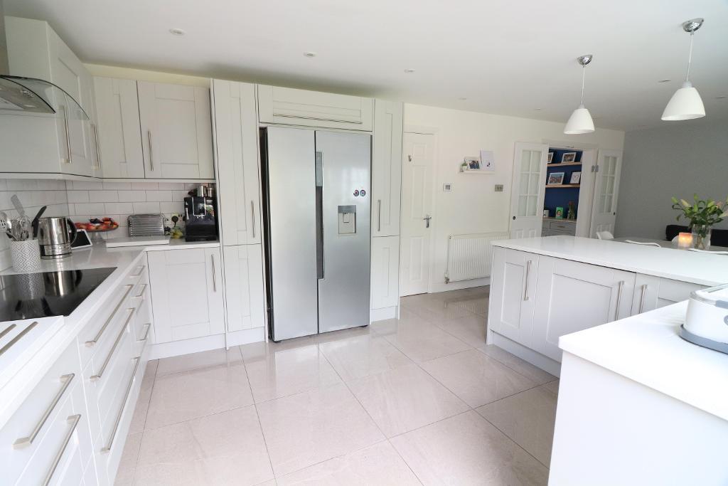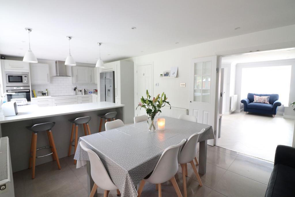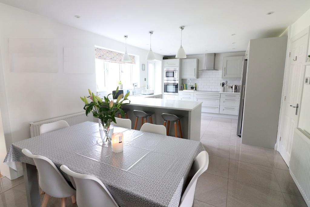 In brief the property comprises; Entrance hall with stairs rising to the first floor, refitted cloakroom, office with ample storage cupboards (housing boiler), 17ft living room with newly laid Karndean flooring, refitted kitchen/diner with underfloor heating, zone lightening, integrated dishwasher & washing machine, quartz worktops & patio doors opening to the rear garden, playroom also with patio doors opening to the rear garden. On the first floor there are four generous size bedrooms & a refitted bathroom suite, master bedroom with a refitted en suite shower room with under floor heating.