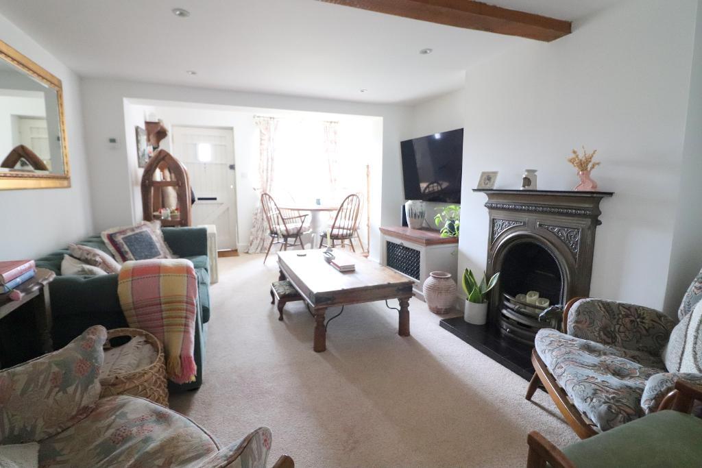 The property has been thoughtfully extended to the front, creating a spacious 17ft lounge/diner with a feature fireplace. A generous frontage provides ample off-road parking, while gas central heating via a combination boiler adds to the home's practicality. The ground floor also includes an inner lobby leading to the bathroom & a fitted kitchen, complete with a range of units, timber worktops & a Butler sink. Upstairs, there are two bedrooms.