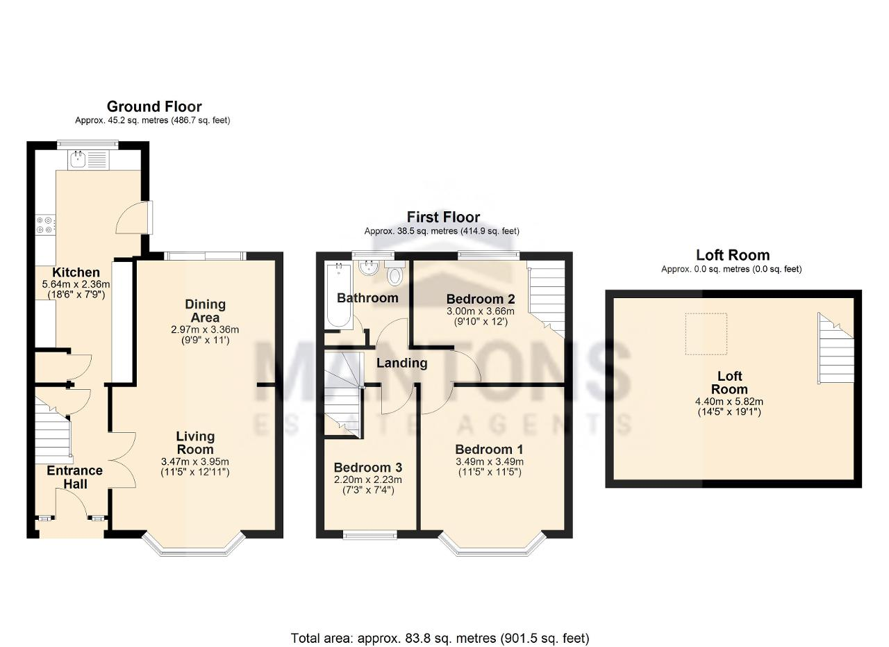 EPC Rating TBC. Council Tax Band B. 901 Sq.ft (Approx.)