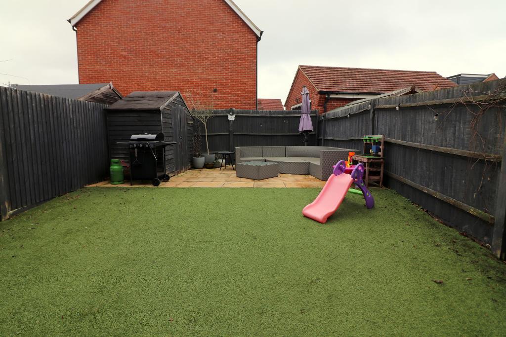 Outside, the rear garden includes a patio & artificial lawn for low-maintenance enjoyment. Further benefits include two allocated parking spaces, gas central heating via a combination boiler & double glazed windows & doors.