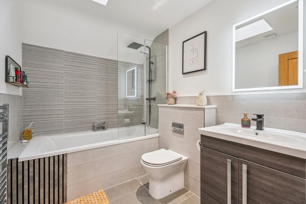 The first floor boasts a spacious landing leading to four well proportioned bedrooms & a modern family bathroom suite. The principal bedroom benefits from a Juliet balcony overlooking the rear garden, along with a contemporary en-suite shower room.
