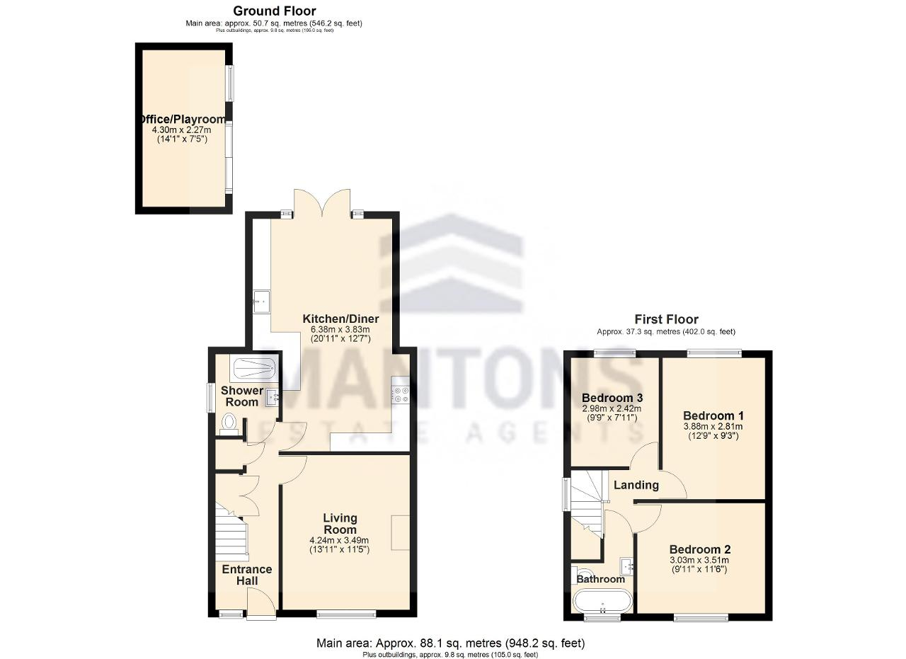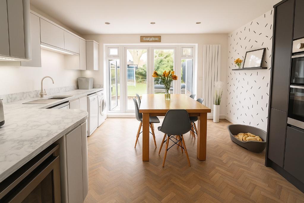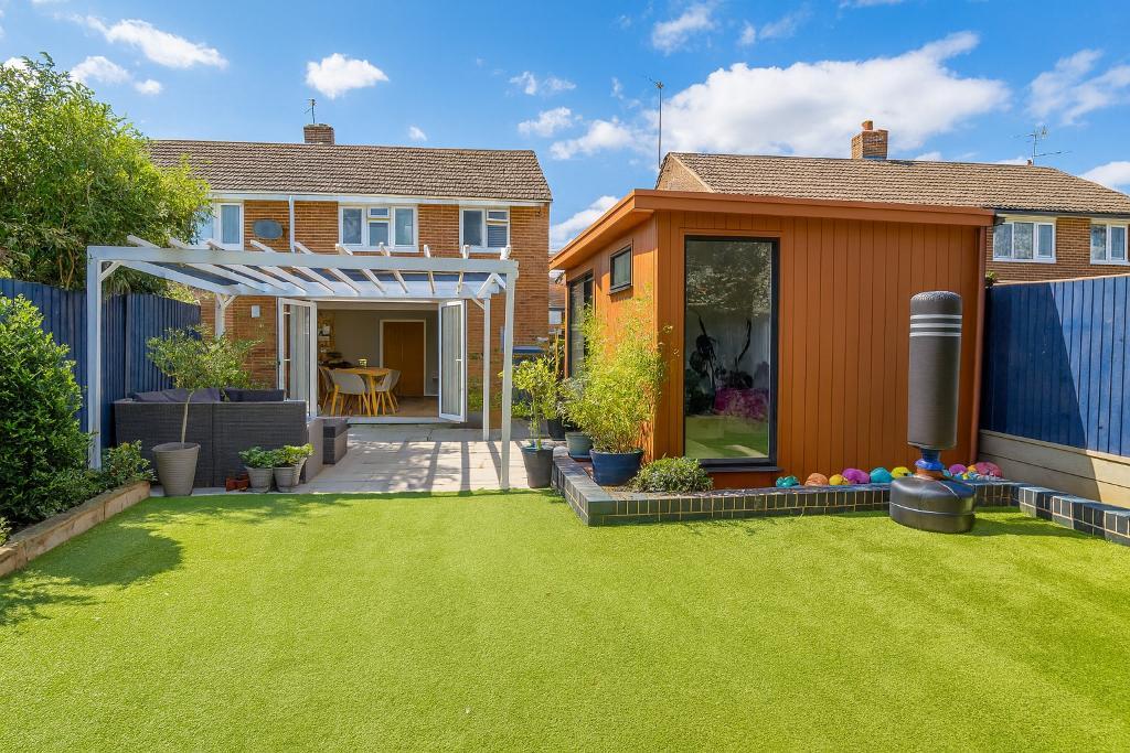 Beautifully presented with a contemporary theme throughout, the property features smooth ceilings, stylish fixtures & fittings and a stunning kitchen/diner that forms the heart of the home. Both the ground floor shower room & the first floor bathroom have been refitted to a high standard, while externally a versatile garden room/home office/playroom has been added, an ideal space for working from home or family use.