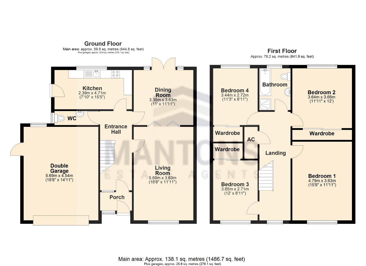 EPC Rating D. Council Tax Band F. 1486 Sq.ft (Approx.)