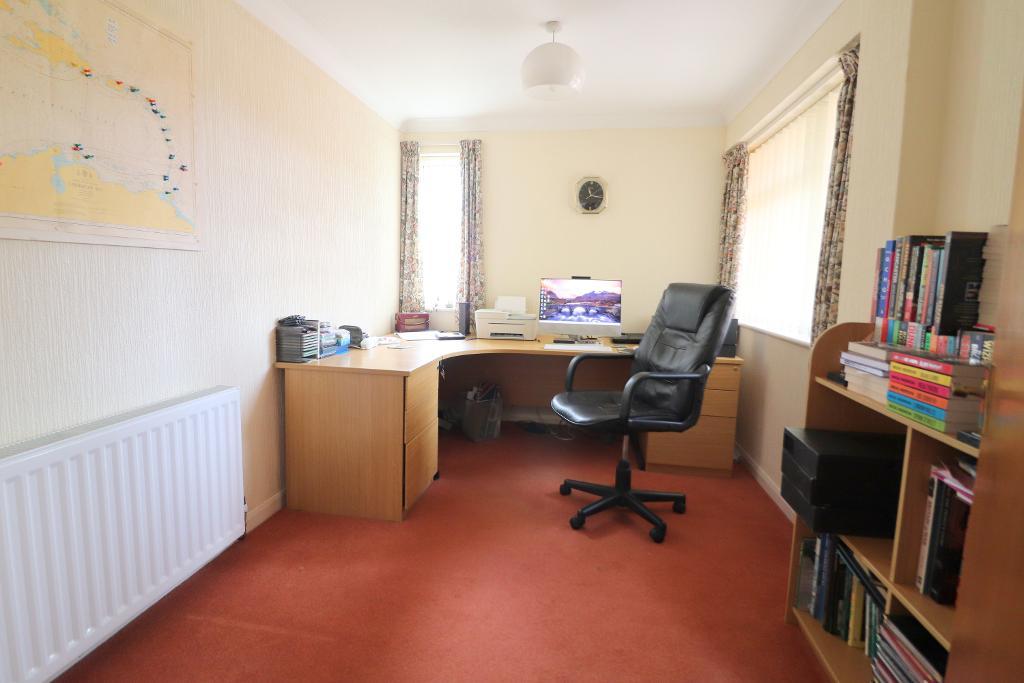 The ground floor comprises an entrance hall, cloakroom, 12ft kitchen/breakfast room equipped with ample counter space & numerous units. 15ft living room with sliding doors leading to the 12ft dining room with sliding patio doors opening to the rear garden & a separate 11ft study room. Upstairs, the first floor accommodates a four piece bathroom suite alongside four well-proportioned double bedrooms. Three of the four bedrooms have built-in wardrobes.
